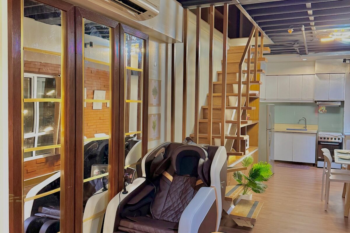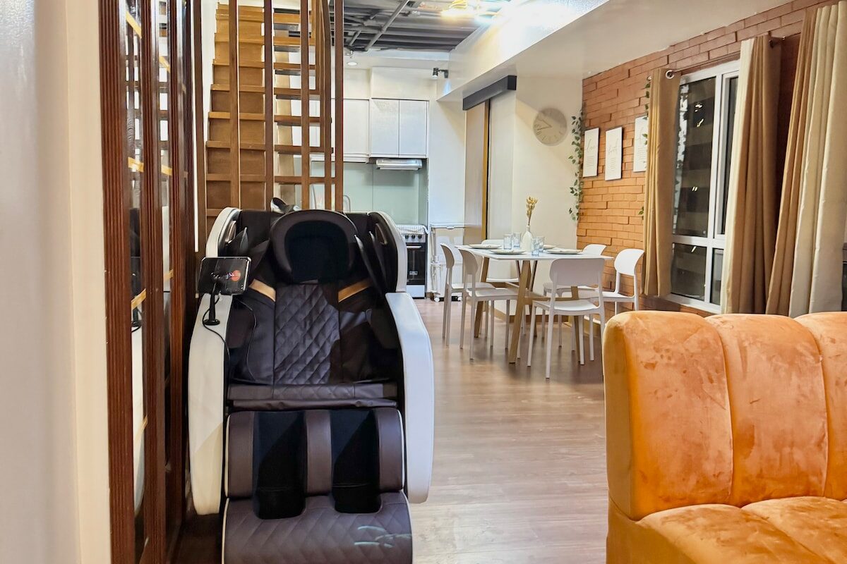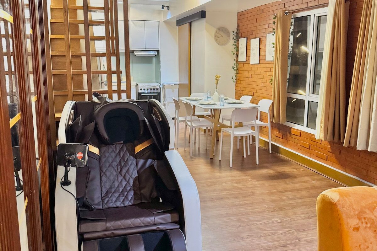 Welcome to your cozy 90sqm loft—perfect for getaways or extended stays! This 2-bedroom condo features a fully equipped kitchen, spacious living area with a 55” Smart TV, and a luxurious massage chair for ultimate relaxation. Whether you’re cooking, lounging, or binge-watching your favorite shows, this space is designed to feel like home. Ideal for couples, families, or groups looking for comfort and convenience in the city!